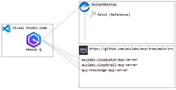 構成はこんな感じで、VSCodeのAmazon Q と Kiroから試してみました。