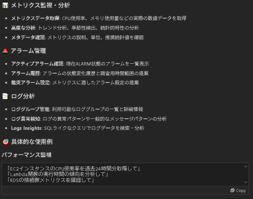 AWSのMCPサーバはGithubに利用の仕方が書いてあります。