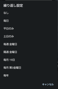 - 繰り返し予定: 9種類の繰り返しパターンに対応