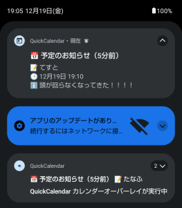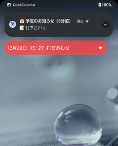 1. 設定 > アプリ > QuickCalendar > 通知 を許可